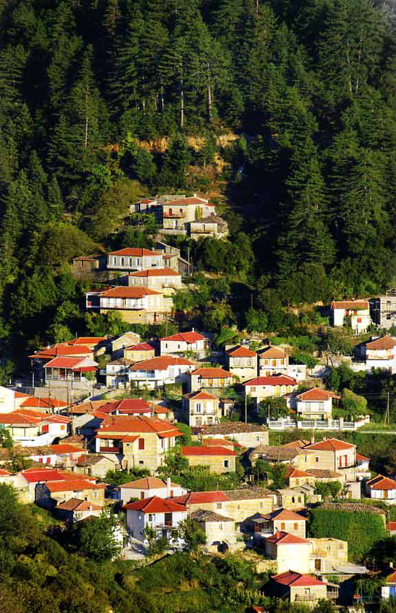 Και ξαφνικά, από τη στροφή του δρόμου, τα Τσίντζινα προβάλλουν χαμηλά, ανάμεσα στο πυκνό ελατόδασος που καλύπτει τα πρανή των λοφοπλαγιών του Πάρνωνα.