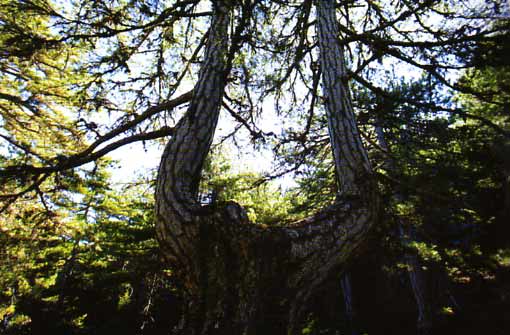Μαυρόπευκο με παράξενους σχηματισμούς κορμών στη διαδρομή προς Αγ. Αναργύρους. |