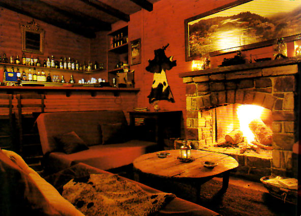 Το τεράστιο πέτρινο τζάκι χαρίζει μια ξέχωρη θαλπωρή στην επενδεδυμενη με ξύλο και εξαιρετικά καλαίσθητη αίθουσα του "Σχολαρχείου". |