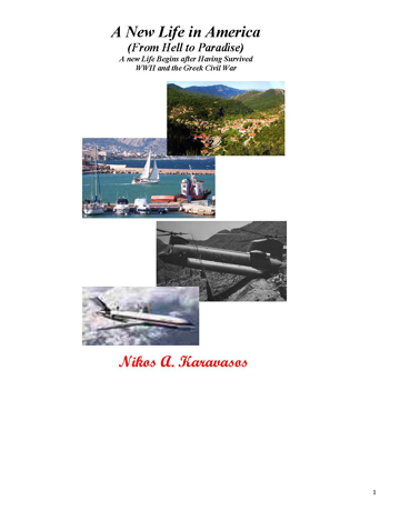 A new Life Begins after Having Survived WWII and the Greek Civil War Nikos A. Karavasos Others may have lived similar journeys, but this remarkable journey of life in America is mine and mine alone. We ventured as a displaced family and we arrived in the land of opportunity, penniless and not speaking a word of English. We were able to not only survive but also excel in our diverse undertakings. Although my brothers and sister followed in the footsteps of my father engaging in the food business as successful entrepreneurs, I on the other hand realized that a college education will serve me better. And it sure did. Six months before I graduated I was given a position by the most admired airplane company in the world – Boeing. I was successfully employed for 38 years until dynamic changes in world events but mostly company miscues toppled it from the pedestal. The new make up of The Boeing Company after buying out McDonnell-Douglas in 1997 was detrimental to Boeing heritage people. They were pushed aside while the ‘knowledgeable newcomers’ ran the show. That’s when I saw my way out and left the company to pursue my travels, enjoy my hobbies, and do consulting for the government. For the most part my years with Boeing were happy years allowing me to provide for my family as the sole provider, something almost unthinkable today as two worker families being the norm. A good portion of the book describes my travels throughout Europe but mainly my travels to over 30 Greek Isles as well as the entire mainland including my paradise on earth – Tsintzina. Nikolaos (Nick) Caravasos Email: