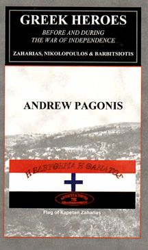 Before and during the war of independence Zaharias, Nikolopoulos and Barbitsiotis The book, “Greek heroes before and during the war of independence: Zaharias, Nikolopoulos and Barbitsiotis,” is about three heroes who played a pivotal role in their respected era’s for Greece to achieve her freedom after nearly four centuries of slavery under the Ottoman Empire. The heroes are named, Zaharias (the) Barbitsiotis, Andonis Nikolopoulos and Petros Anagnostopoulos-Barbitsiotis and they all played a significant role in Greek society, by either laying the foundation for Greek Independence, or by continuing and preventing the Greek cause for liberation from becoming extinct. The book covers heroes’s life history and dwells on some of their major life events, which changed the history of Modern Greece. It also informs the readers about the major battles they faced their various ordeals they went through and a brief background about their family lineage. Also, the book includes information on the respected villages they came from and were based at. In addition, the book explains the close association and relationship between the three heroes.. It should also be mentioned that the book rightfully covers the social and government structure, along with the events in the Peloponnese leading up to the time period of when these three heroes started their glorious history. The cost of the book is $ 11.00 (US) and anyone who is interested may contact Andrew Pagonis, the author of the book, by e-mail: APagonis@exchange.ml.com